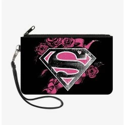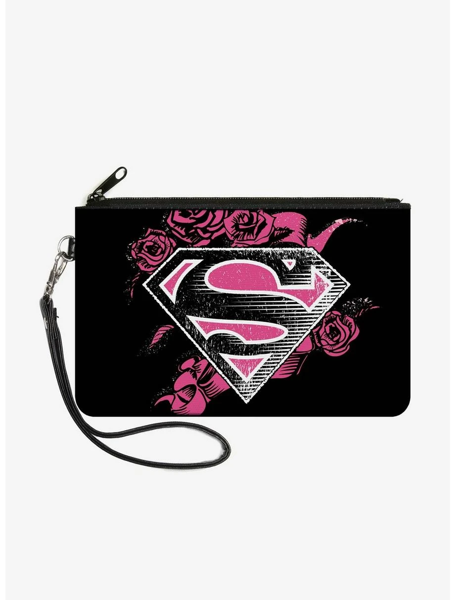 Boxlunch DC Comics Superman Shield Roses Weathered Wallet Canvas Zip Clutch