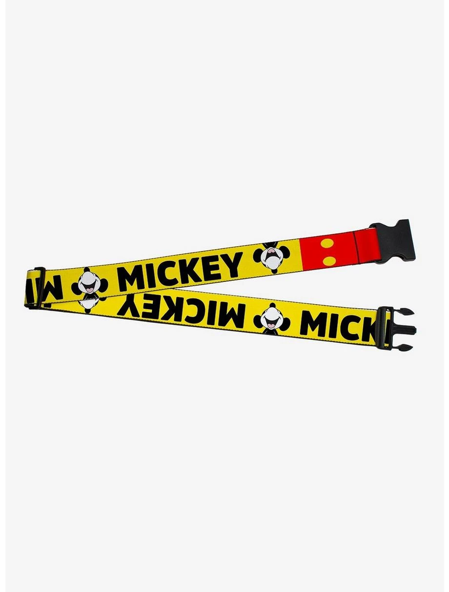 Boxlunch Disney Mickey Smiling Up Pose Flip Buttons Yellow Black Red Luggage Strap