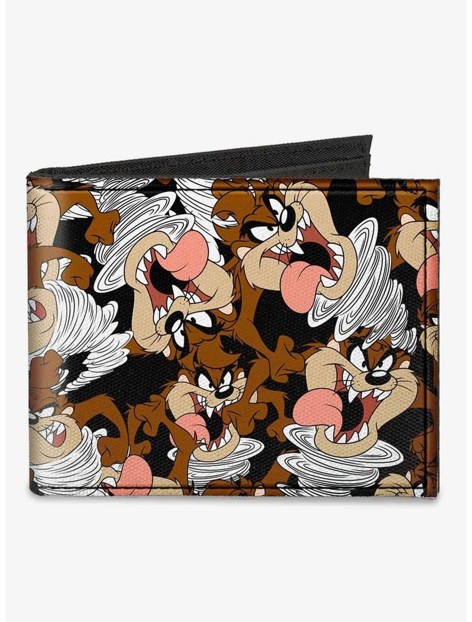 Boxlunch Looney Tunes Tasmanian Devil Vortex Poses Scattered Canvas Bifold Wallet