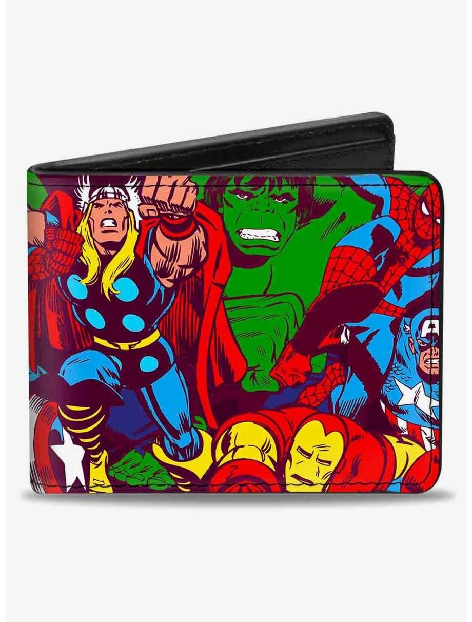 Boxlunch Marvel 5 Retro Avenger Superhero Action Poses Stacked Bifold Wallet