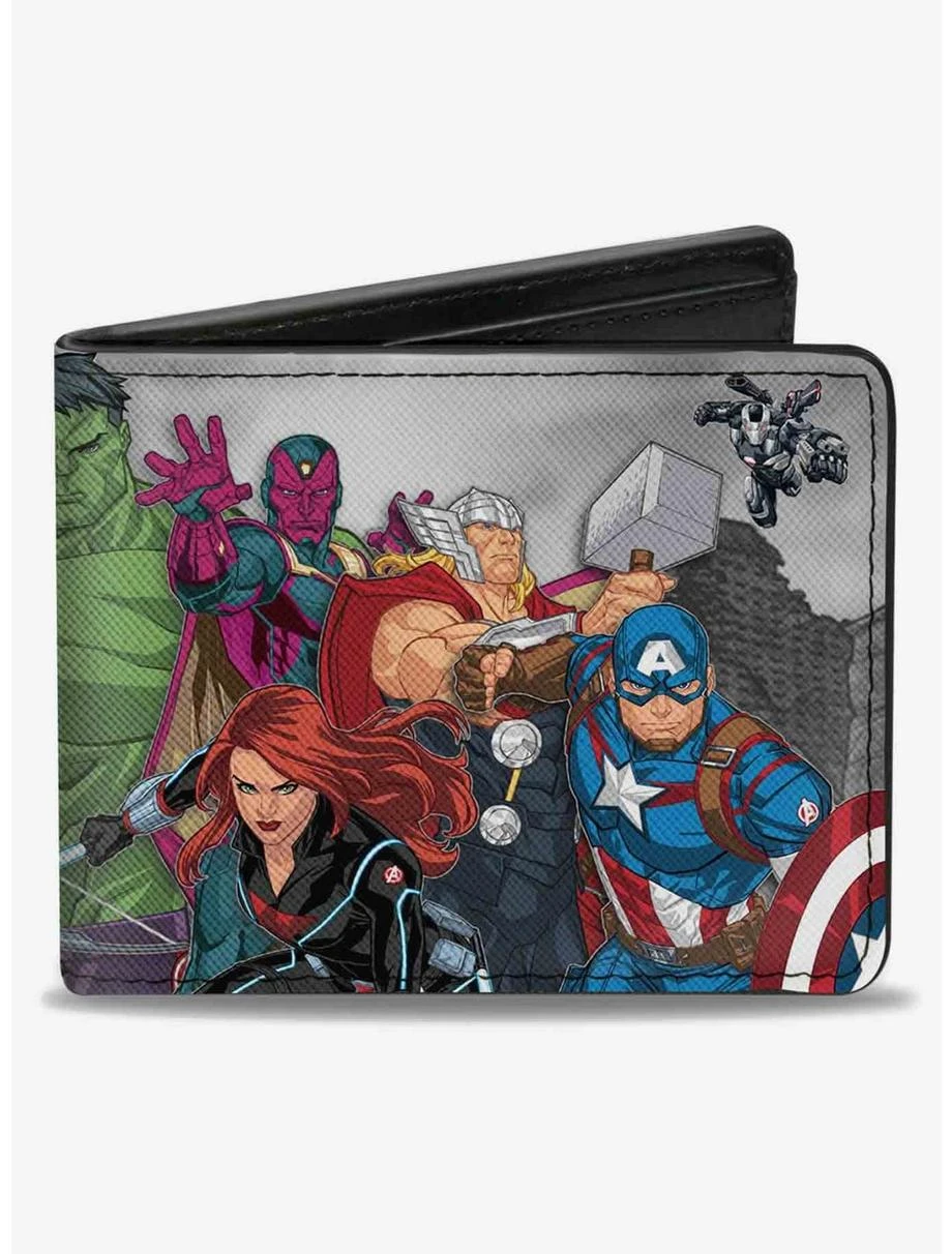 Boxlunch Marvel Avengers 11 Character Group Pose Buildings Bifold Wallet
