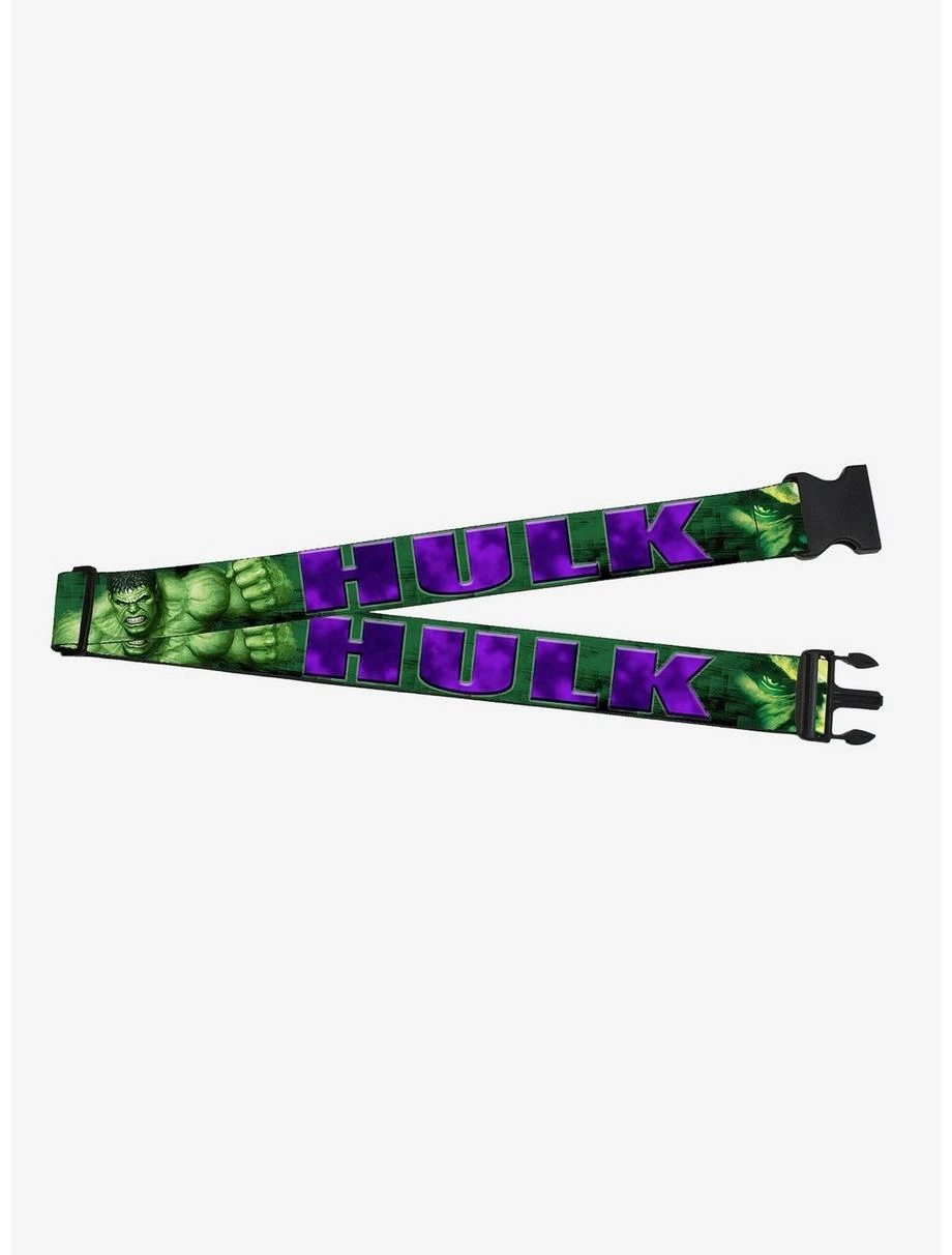 Boxlunch Marvel Hulk Face Close Up Action Pose Greens Purples Luggage Strap