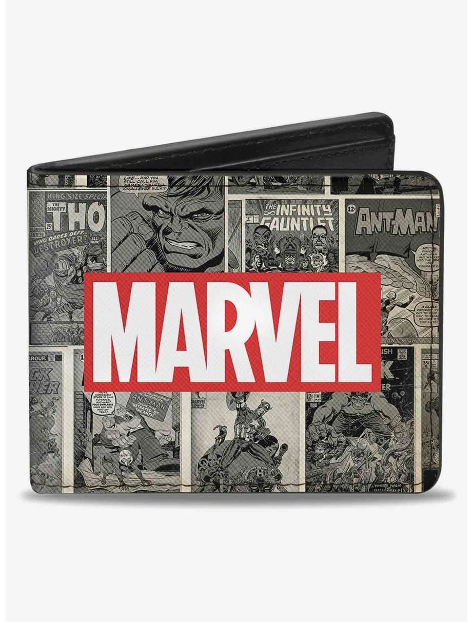 Marvel Logo Retro Comic Covres Scene Blocks Bifold Wallet