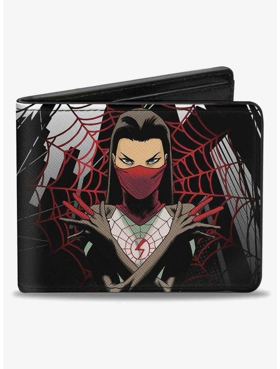 Boxlunch Marvel Silk Poses Spider Web Skyline Bifold Wallet