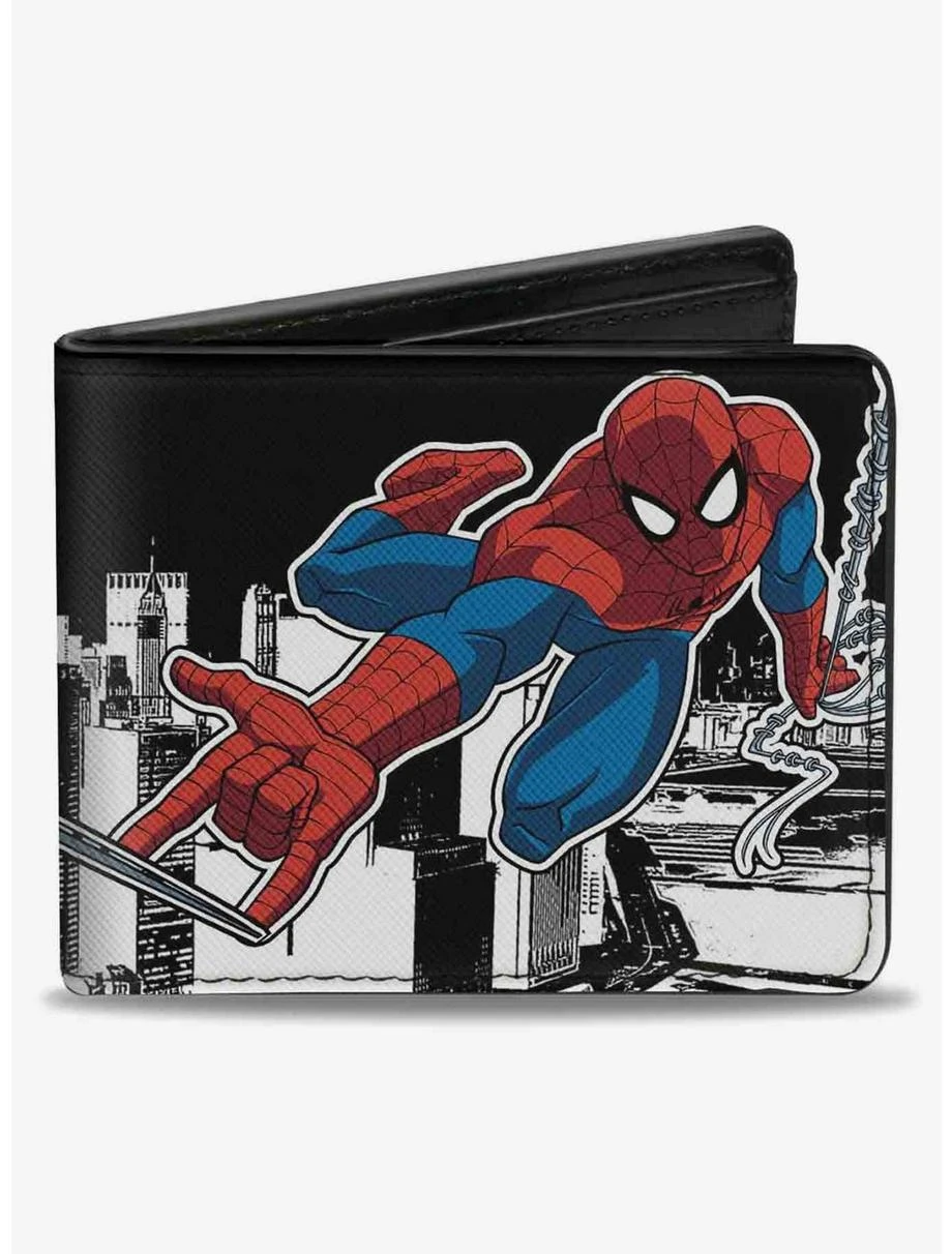 Boxlunch Marvel Spider-Man Swinging Pose2 Skyline Bifold Wallet