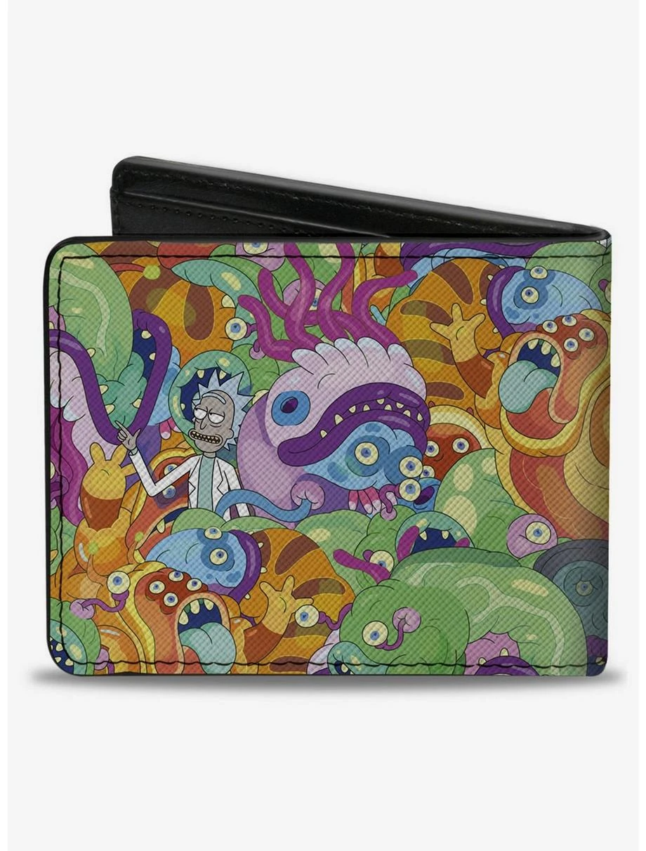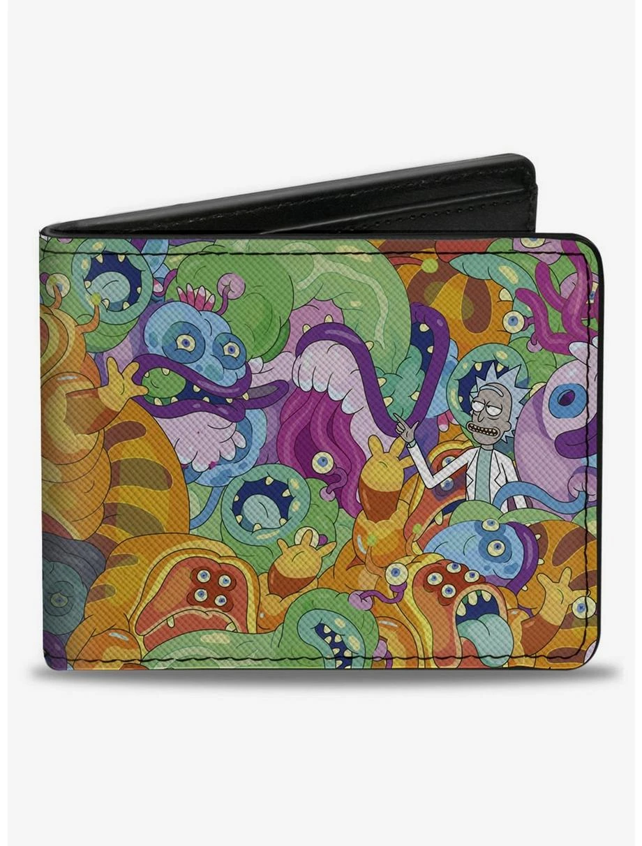 This awesome men’s bi-fold wallet is made from premium vegan leather. It measures 4 x 3.5 x 0.5″, and features the standard billfold, 5 card slots, and windowed ID holder. The logos are applied using advanced printing technologies, so the wallet will still look good after years of hard use. This product is made by Buckle-Down, Inc. and Officially Licensed by Rick and Morty.