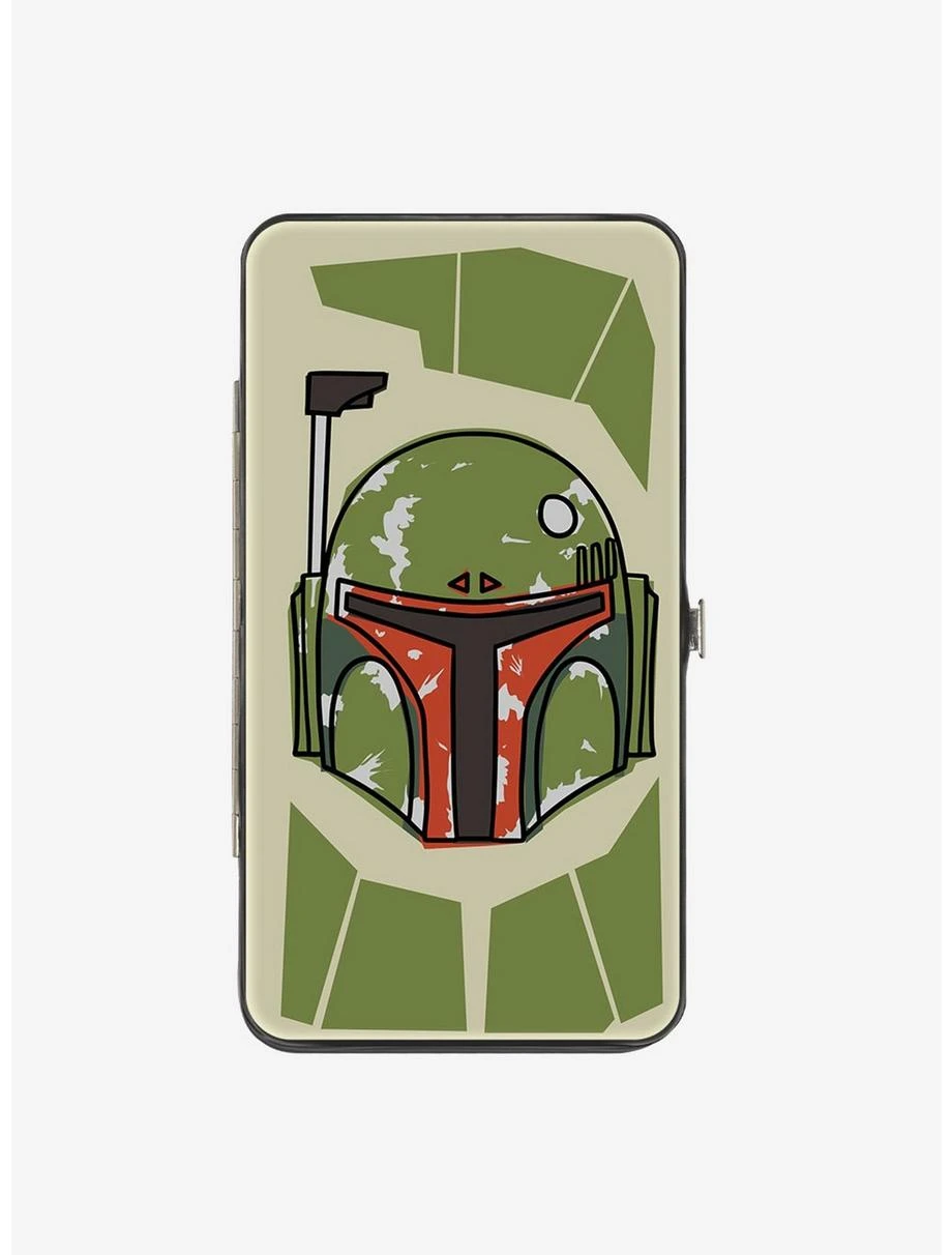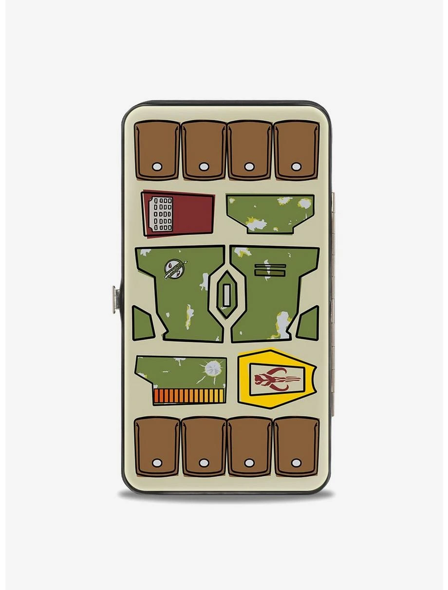 Stylish and sleek, this hinged wallet is made from vegan leather and stainless steel. It measures 7 x 4 x 0.75 inches, with 2 billfolds, 4 card slots, and a windowed ID holder.
