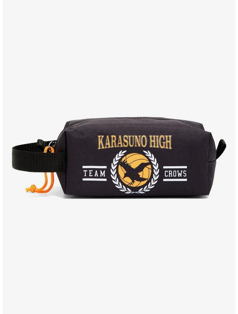 Travelling for a big game? Carry all of your essentials with this Haikyu!!-inspired toiletries bag! Featuring a front portrait graphic of Karasuno High’s Tobio Kageyama and Shoyo Hinata on the front and an attached handle, this accessory makes the perfect travel companion. Also features the Karasuno High Crows logo on the back side.