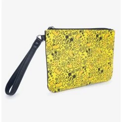 Boxlunch Disney Mickey Mouse Mickey Mouse Icon Doodles All Over Yellows Black Single Pocket Wristlet